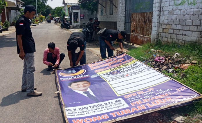Ketua Bawaslu Kabupaten Tuban, Sulamul Hadi saat dikonfirmasi mengatakan, penertiban tersebut dilakukan kemarin (12/12/2018) sejak pagi hingga malam, dan hal itu juga dilakukan oleh seluruh Kabupaten kota di Jawa Timur secara serentak.