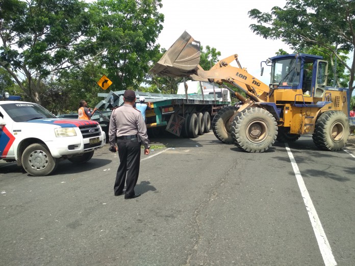 kabartuban.com - Aktivitas truk trailer pengangkut alat berat yang...