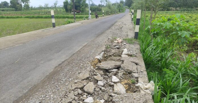 Jono, petani yang setiap hari melintas, mengatakan kerusakan tersebut telah lama dibiarkan. Warga bahkan terpaksa menandai titik jalan yang ambles dengan menanam pohon kecil.