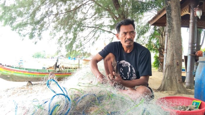 “Gelombang tinggi ini biasanya muncul mulai jam sepuluh sampai jam dua belas siang. Kalau sudah seperti itu, kami tidak berani melaut jauh,” ujar Sutikno saat membenahi jaringnya di pantai Boom, Selasa (13/1/2026).