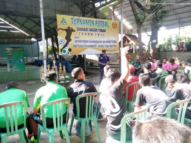 kabartuban.com – Untuk memperat tali silaturahi antar anggota, Pimpinan Cabang Gerakan Pemuda (GP) Ansor Kabupaten Tuban menggelar Futsal Piala Ansor Cup 2017 di lapangan Futsal Manunggal, Kelurahan Gedongombo, Kecamatan Semanding Tuban Sabtu (23/7/2017).