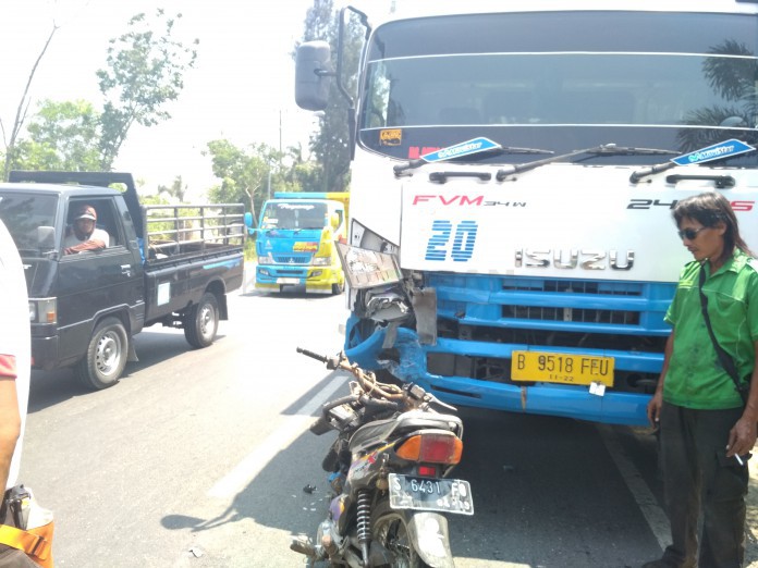 Laka lantas maut itu terjadi bermula saat motor yang kendarai Rebo itu melaju dari arah Timur dalam keadaan sepi. Namun, pada saat bersamaan, laju motor tidak stabil dan mengarah ke jalur kanan. Tanpa sengaja, Truk tronton yang dikemudikan Siswanto (46) warga Jalan Parkit Raya Kampung Pulo Kecil Kota Bekasi dari arah sebaliknya dan menabrak bagian depan truk.