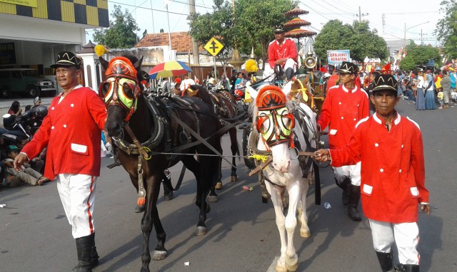 kabartuban.com – Beragam penampilan disuguhkan di acara Pawai Budaya Nusantara dalam rangka Memperingati HUT Kemerdekaan RI ke-71 di kota Tuban, salah satunya adalah rombongan peserta pawai dari SMK Taruna Jaya Prawira (TJP) Tuban yang mengusung tema adat Daerah Istimewa Jogyakarta dan mendatangkan langsung kereta raja dan kuda dari Jogjakarta.