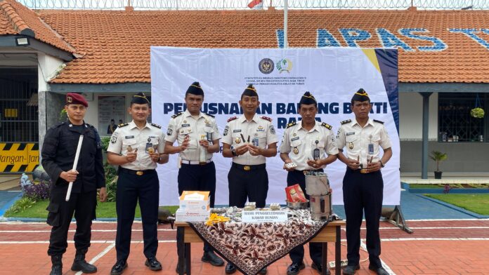 kabartuban.com – Lembaga Pemasyarakatan (Lapas) Kelas IIB Tuban, Kantor Wilayah Direktorat Jenderal Pemasyarakatan Jawa Timur, memusnahkan barang sitaan hasil razia kamar hunian warga binaan, Senin (26/1/2026). Langkah ini menjadi wujud nyata komitmen Lapas Tuban dalam menciptakan lingkungan pemasyarakatan yang aman, tertib, dan kondusif.