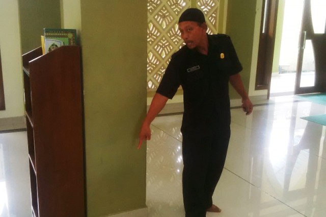 Menurut Sutoyo, salah satu saksi yang juga menjadi Satpam di masjid tersebut, menjelaskan pada saat ia masuk masjid, ia melihat pelaku dari closed circuit television (CCTV) yang sedang mengambil kunci yang dijatuhkan di dekat kotak amal.