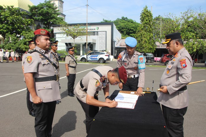 Usai prosesi sertijab, Kapolres Tuban berharap seluruh pejabat yang baru dilantik dapat segera beradaptasi dan menunjukkan kinerja terbaik dalam mengemban amanah baru di Polres Tuban. (fah)