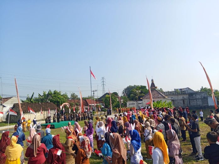 Sedikitnya 500 warga dari berbagai kalangan, mulai perangkat desa, tenaga pendidik, petani, pedagang, hingga ibu rumah tangga, larut dalam suasana khidmat. Upacara digelar sederhana, namun penuh makna kebersamaan.