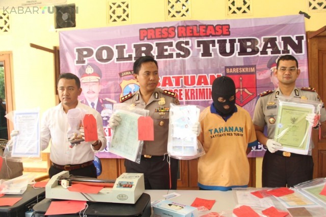 Kabartuban.com- Kepolisian Resort (Polres) Tuban berhasil meringkus tersangka atas pemalsuan dokumen, surat-surat dan akta-akta otentik dengan inisial HS (50), warga asal Gang Sedap Malam, Kelurahan Doromukti, Tuban.