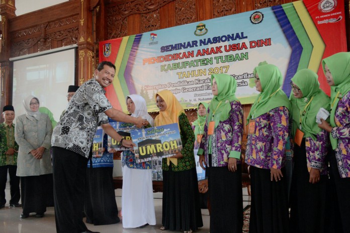 kabartuban.com – PT Semen Gresik berikan hadiah tiga paket ibadah umroh pada guru PAUD/TK/RA peserta Seminar Nasional yang bertajuk Sinergitas Pendidikan Karakter dan kearifan Lokal Menuju Generasi Emas Indonesia di Pendopo Krido Manunggal Tuban, sabtu (18/141/2017).