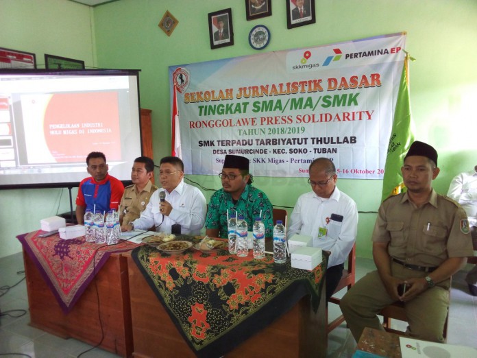 kabartuban.com – SMK Tarbiyatut Thulab kini menjadi tempat kali ketiga Program Sekolah Jurnalistik Dasar (SJD) yang di gelar oleh Ronggolawe pers Solidarity (RPS) bekerjasama dengan Pertamina EP (PEP) Asset 4 Sukowati Field Sokowati, Senin (15/10/2018).