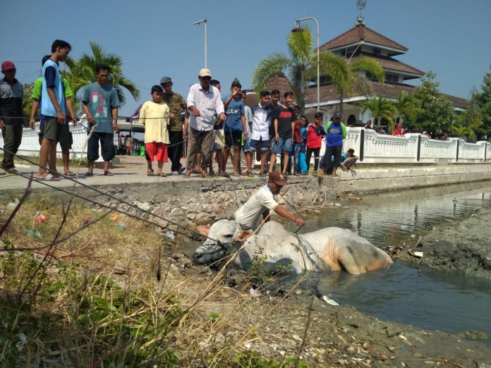 “Tadinya akan disembelih, tapi lepas dari tangan petugas penyembelihan dan mengarah keluar hingga jatuh di area tambak” jelas Karmana kepada awak media.