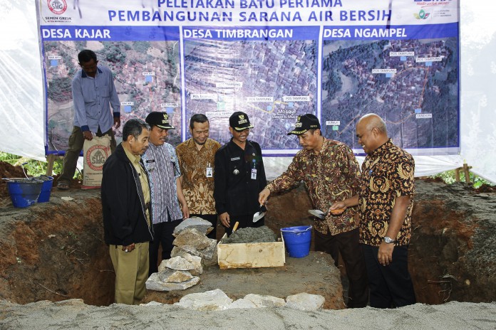“Pembangunan sarana air bersih di 3 desa dengan jumlah penduduk 600 KK atau 1800 jiwa.dikerjakan mulai hari ini dan ditargetkan rampung dalam waktu 45 hari kedepan,” kata Direktur Utama Semen Gresik Mukhamad Saifudin, saat peletakan batu pertama, bersama Bupati Rembang Abdul Hafidz Di Dukuh Jatimalang Desa Kajar Kecamatan Gunem.
