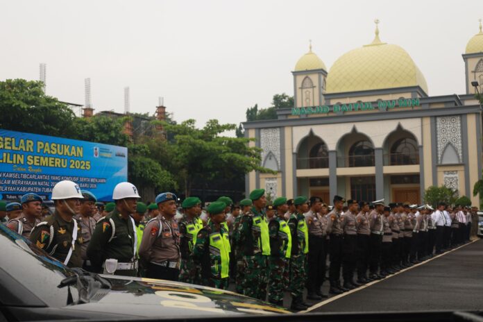 kabartuban.com – Menyambut perayaan Natal 2025 dan Tahun Baru 2026, Polres Tuban memastikan kesiapan penuh pengamanan melalui Apel Gelar Pasukan Operasi Lilin Semeru 2025. Kegiatan tersebut menjadi penanda dimulainya pengamanan terpadu untuk menjaga stabilitas keamanan dan kelancaran lalu lintas selama momentum Nataru di Kabupaten Tuban.
