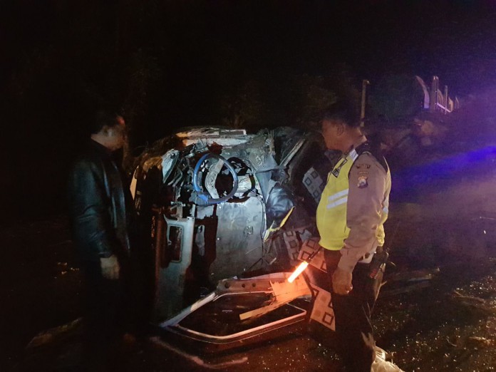 Kejadian laka lantas itu terjadi, Sabtu (6/5/2018) sekitar pukul 01.30 dini hari antara kendaraan Minibus Elf  bernopol W-7270-X dengan truk trailer bernopol W-9113-US, Peristiwa tepat di timur Rumah makan Padang Simpang Lima Jenu.