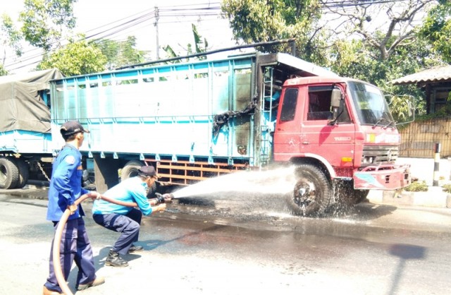 Beruntung sejumlah warga disekitar lokasi sigap memberikan pertolongan dengan alat seadanya, hingga api tidak menjalar kebagian bak truk yang terbut dari kayu. Satu unit truk pemadam kebakaran diterjunkan ke lokasi untuk memastikan api benar- benar padam.