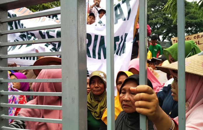 “Jika Penlok dipaksakan, maka ini menciderai hukum UU Nomor 2 tahun 2012, tentang pengadaan tanah untuk kepentingan umum, karena tidak kesepakatan dari pihak pemilik tanah, padahal kita menolak,” kata Munasih dalam orasinya.